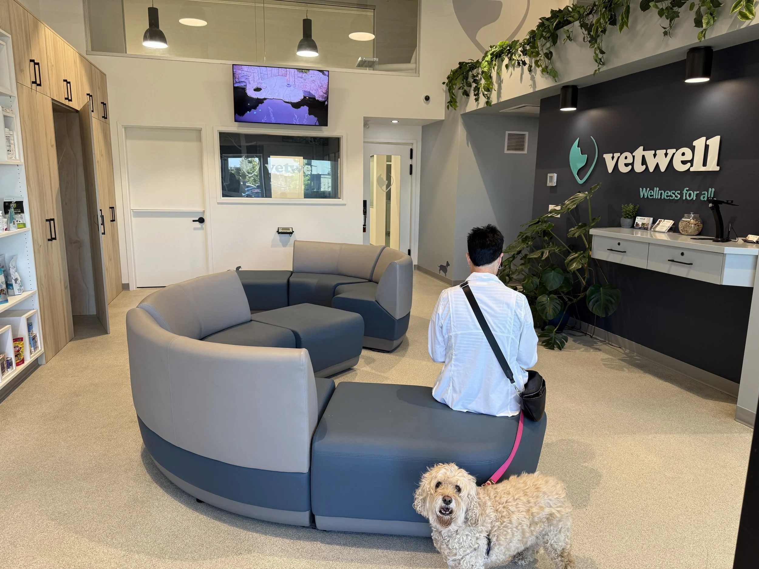 Vetwell's hospital features a lounge-style reception, transparent treatment areas, and even a lookout into our surgery suite. With amenities like a kids' playroom, dedicated comfort room, and a signature mezzanine overlooking the hospital, we offer an experience that prioritizes the well-being of pets, their families, and the care team as a whole.